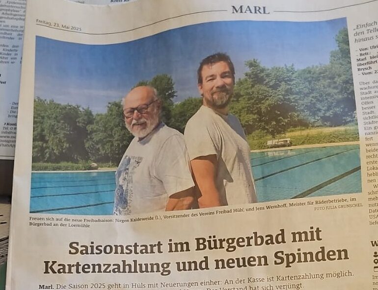 Die Karten für das Schützenfest Marl Hüls vom 05. – 07.09.25 auf dem Feld Ovelhey können auch bei uns im Bürgerbad erworben werden.